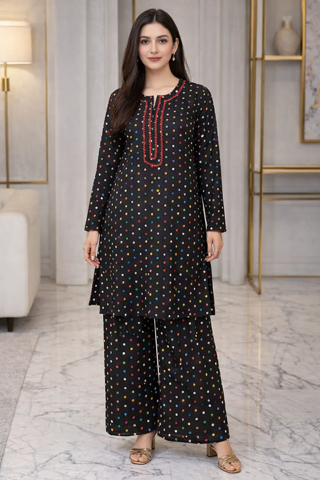 - Color: Black / Multi Dots