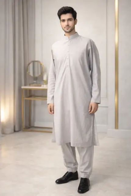 Men Kurta Shalwar Stitched (Cream White)
